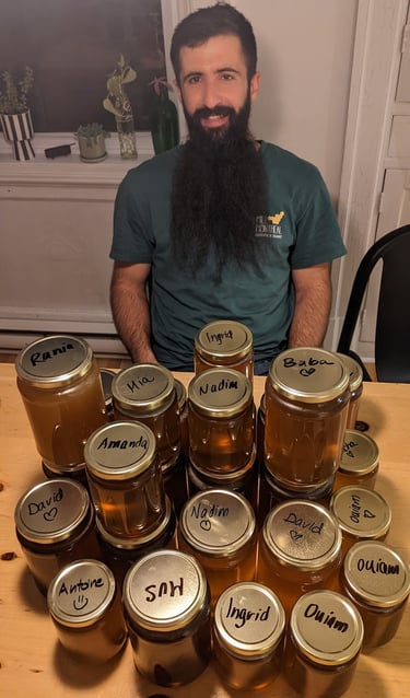 From his teenage years, Wissam has been passionate about honey production. He honed his skills under the tutelage of his uncle in the picturesque Bekaa Valley of Lebanon. By observing his uncle closely, Wissam absorbed the intricacies of the craft. When his uncle relocated to Canada, 14-year-old Wissam delved deeper into honey-making, not just to maintain a bond with his mentor but also because he genuinely loved the process. Recognizing his passion, he eventually turned it into a livelihood. Years later, Wissam followed in his uncle's footsteps to Canada, where he set up his own bee farm, producing several tonnes of honey each year.